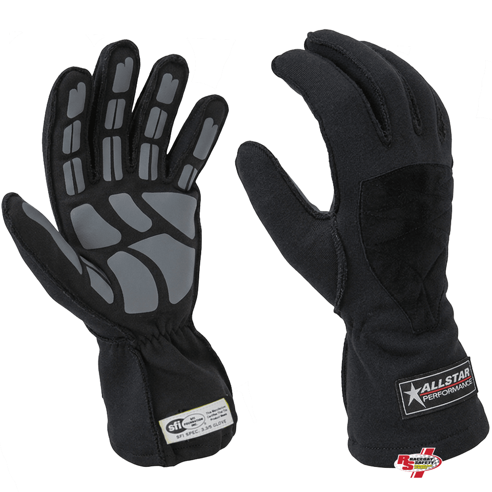 ALLSTAR Performance Driving Gloves Outseam SFI 3.3/5 Double Layer Nomex Black/Gray.