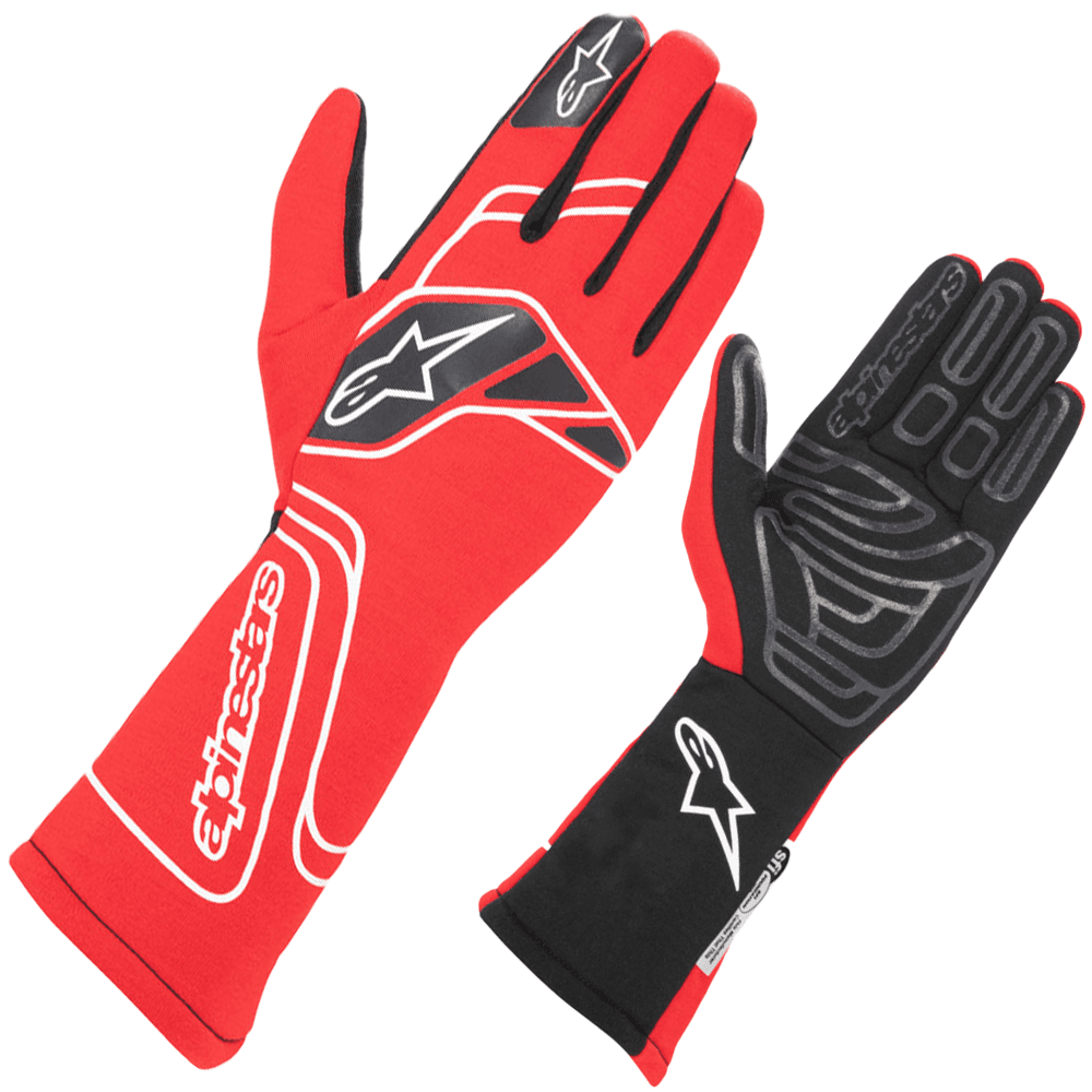 Alpinestars Tech-1 START V3 Race Gloves in Red with Black/White printed logo and highlights. The "START" series of Auto Racing Gloves is Alpinestars' most affordable selection. The "V3" designates the 3rd version of the START series, as Alpinestars like to make slight design and color upgrades every few years. We agree with many of our customers that the START series gloves are equivalent or better than A-stars more expensive models, in terms of comfort, fit and feel.