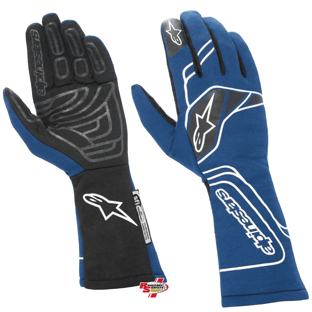 Alpinestars Tech-1 START V3 Race Gloves in a deep Royal Blue with Black/White printed logo and highlights. The "START" series of Auto Racing Gloves is Alpinestars' most affordable selection. The "V3" designates the 3rd version of the START series, as Alpinestars like to make slight design and color upgrades every few years. We agree with many of our customers that the START series gloves are equivalent or better than A-stars more expensive models, in terms of comfort, fit and feel.
