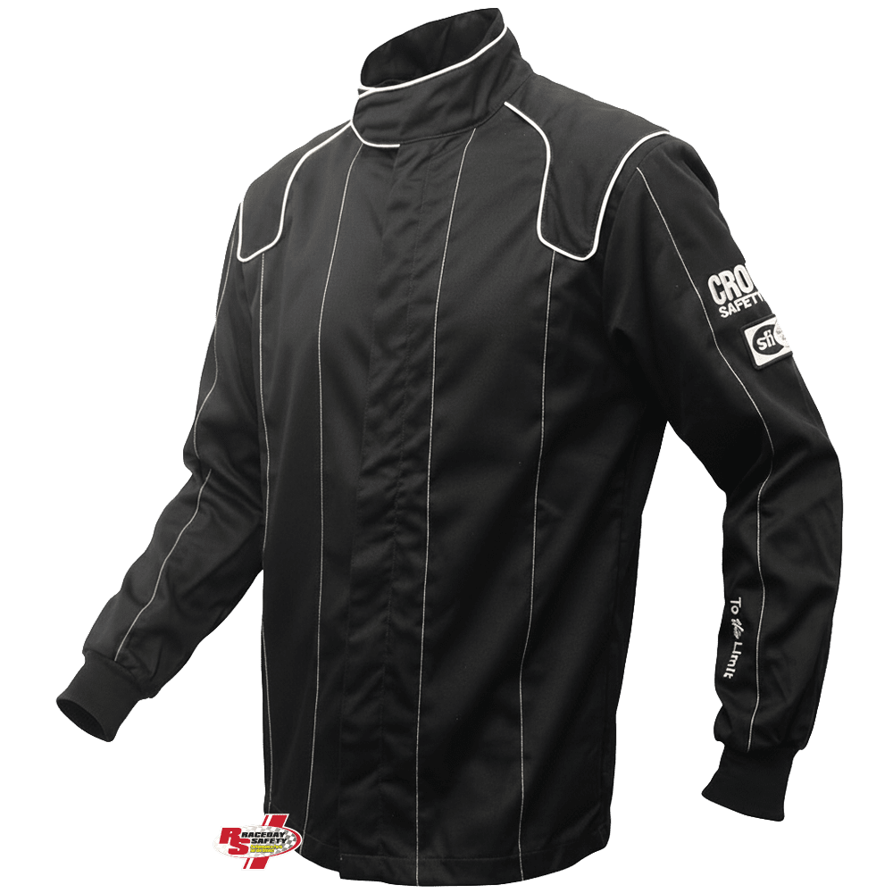 Crow "To the Limit" Legacy SFI-1 Racing Jacket. Crow has always been fairly straightforward and traditional with their race suit styling, but they decided to go a little bit "outside of the box" with the Legacy Driving Jacket. Vertical accent stitching and "To the Limit" embroidery on the left lower sleeve is the new Crow Safety Gear standard.
