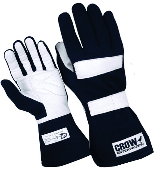 The Crow Junior racing gloves are flame retardant with an SFI 3.3/5 certification patch, which makes them easily accepted by the tech inspector for just about all forms of youth auto racing.