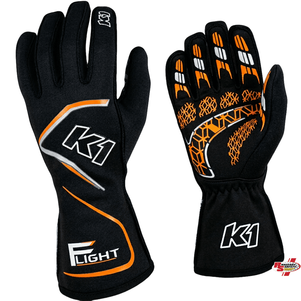 K1 RaceGear Flight Racing Gloves Black/Fluorescent Orange. K1 Race Gear consulted with top Pro Racers and the K1 FLIGHT Gloves were developed as a premium alternative to the higher end products of Alpinestars, OMP and Sparco.