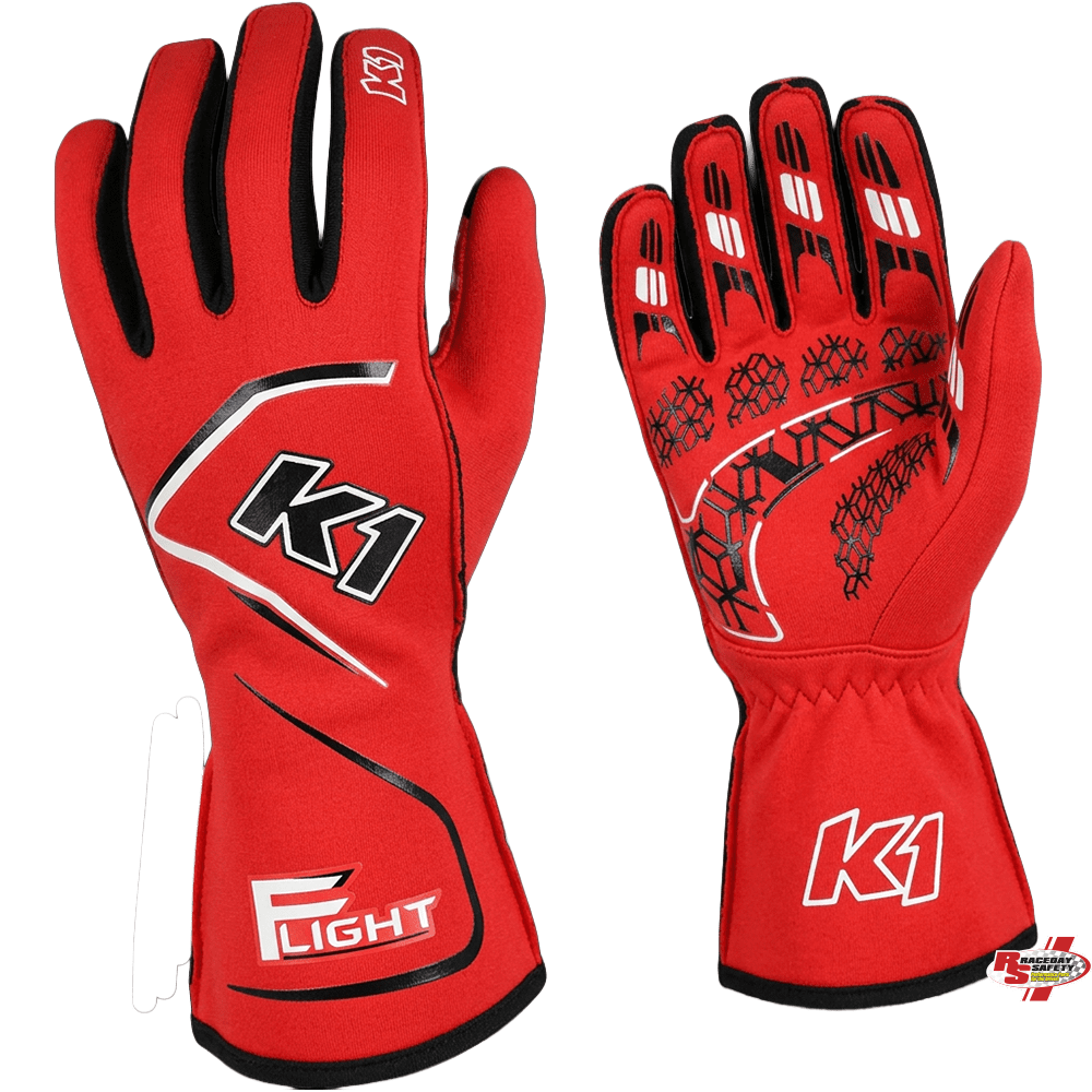 K1 RaceGear Flight Racing Gloves Red. K1 Race Gear consulted with top Pro Racers and the K1 FLIGHT Gloves were developed as a premium alternative to the higher end products of Alpinestars, OMP and Sparco.