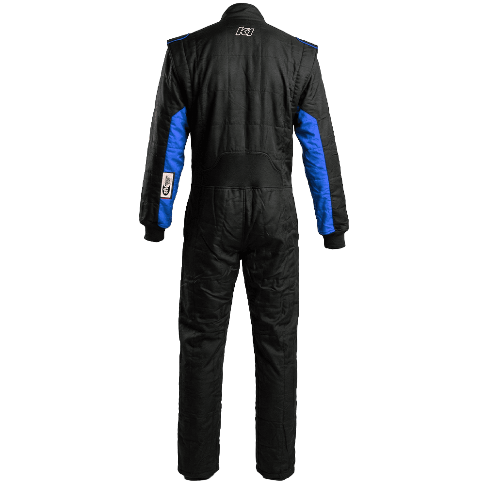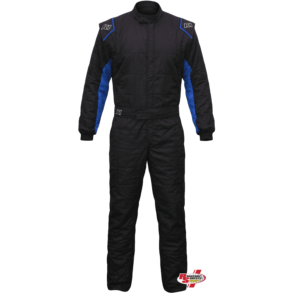 K1 RaceGear Outlaw Adult One-Piece Fire Suit Black/Blue.