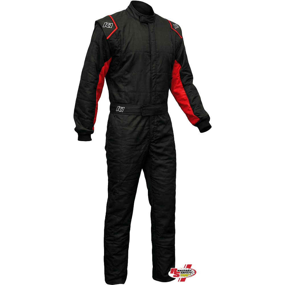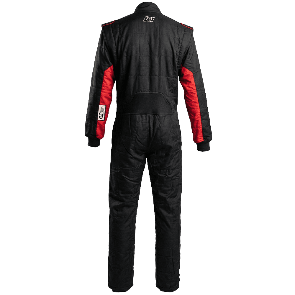 K1 RaceGear Outlaw Adult One-Piece Fire Suit Black/Red.