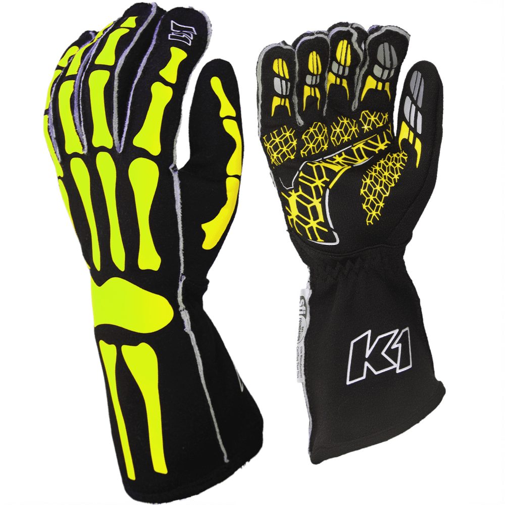 K1 RaceGear SKELETON Nomex® Racing Gloves Black/Flo Yellow