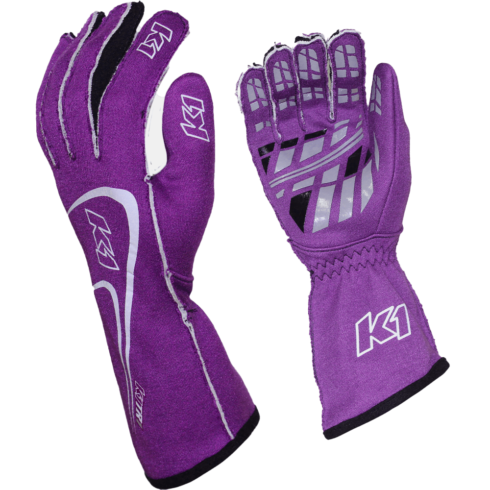 K1 RaceGear Track 1 Racing Gloves Purple. RaceDay Safety and K1 RaceGear collaborate to offer racers a wider variety of color options through our semi-custom Racing Glove program.