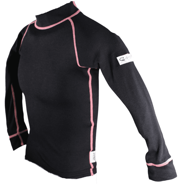 PXP Fire Resistant Underwear Shirt in Black with Pink Stitching. PXP Underwear is constructed from "Aramid" or fire resistant materials to add additional protection to the racer.