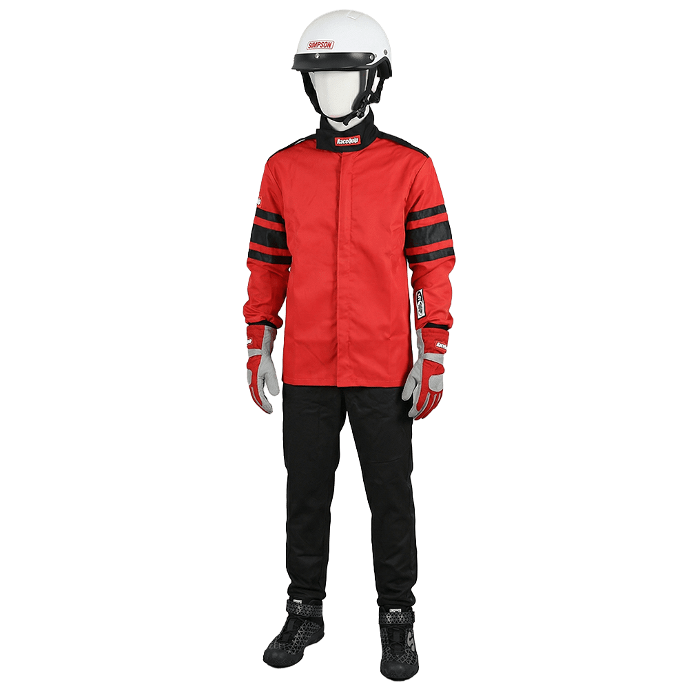 • RaceQuip Jacket with Red flame retardant fabric. Meets the SFI 3.2A/1 specifications.