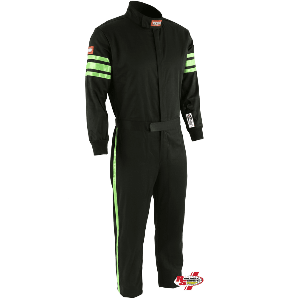 RaceQuip Pro-1 Kids SFI-1 Racing Suit in Black and Green. RaceQuip manufactures youth racing gear with 3 primary objectives: Safety, Durability and Value. Of course, safety is the most important, but parents also want a well built piece of equipment at an affordable price.