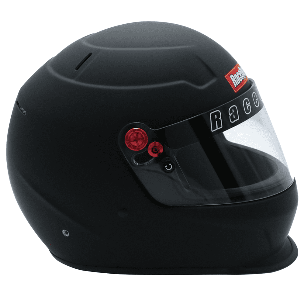 RaceQuip PRO25 Racing Helmet Flat Black. RaceQuip's PRO25 Race Helmet features Snell SA2025 certification and the popularity of the Flat Black paint job.
