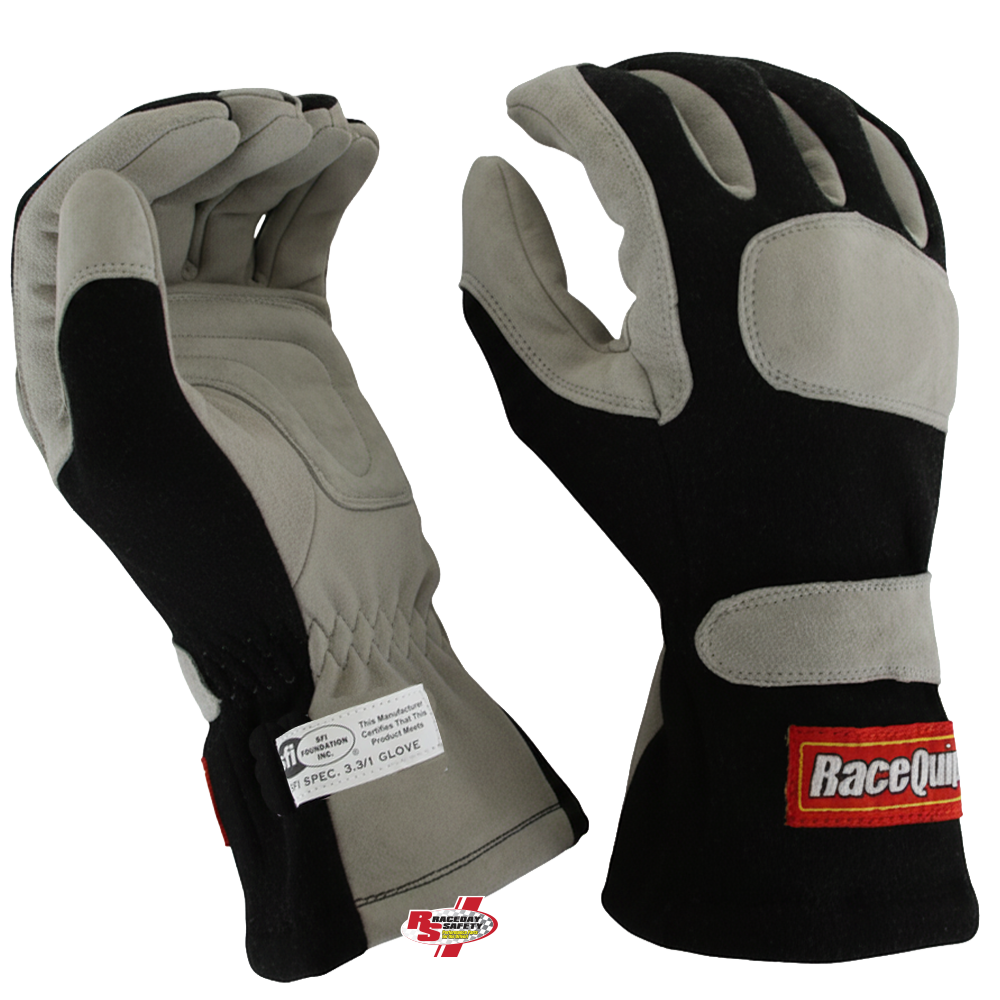 RaceQuip 351 Series 1 Layer Nomex® Race Gloves Black/Gray. The RaceQuip 351 Driving Glove is a combination of Nomex and leather allowing it to pass the SFI 3.3/1 heat and flame testing for racing gloves.