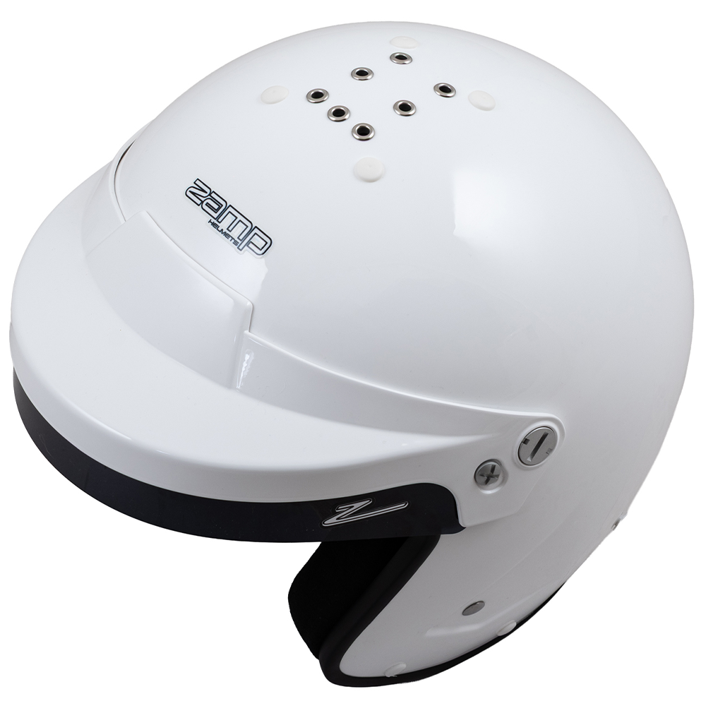 Zamp RZ-19S Open Face Racing Helmet with the Gloss White exterior finish. Zamp, which is now the USA's #1 selling Helmet brand, releases their Snell SA2025 approved Series of Open Face Helmets.