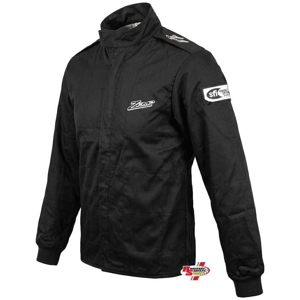 Zamp ZR-10 Race Jacket Black. Zamp's entry into the fire suit market is the Zamp ZR-10 Racing Jacket and it's a popular selection at RaceDay Safety. The ZR-10's broad size range can fit just about every driver. Available in sizes Small through 5X-Large, with an industry first.....no price increase for the larger sizes. Lightweight, fire retardant cotton race jacket includes: box quilt stitching, shoulder epaulets and ribbed wrist cuffs.